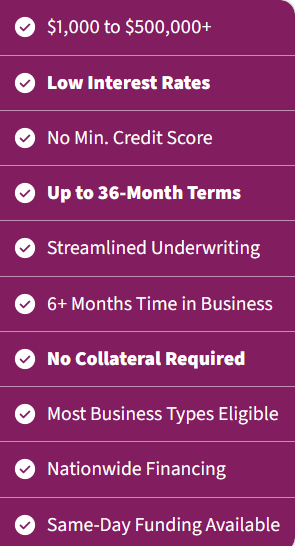 We offer multiple financing options for businesses including Term Loans, SBA Loans, Advances, Credit Lines, and more! We can even consider borrowers turned down by other lenders due to low credit or other financing barriers.