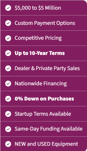 Most equipment and businesses are eligible, and you can count on the most competitive terms and a tailored equipment financing structure that works for you. Don’t give us your business, let us earn your business!